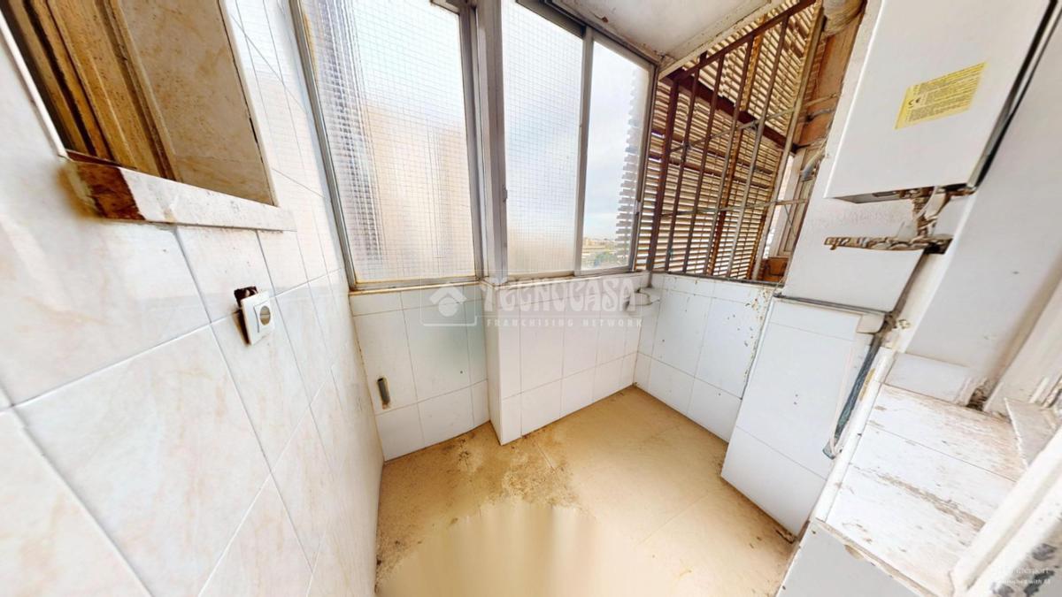 Ubicado en una novena planta con ascensor, cuenta con tres dormitorios, un baño (posibilidad de hacer un segundo baño), amplia cocina con galería y la vivienda es totalmente exterior, lo que garantiza una luminosidad extraordinaria durante todo el día. Además, dispone de un amplio balcón, ideal para relajarte al aire libre y disfrutar de unas vistas despejadas hacia una zona en pleno desarrollo.