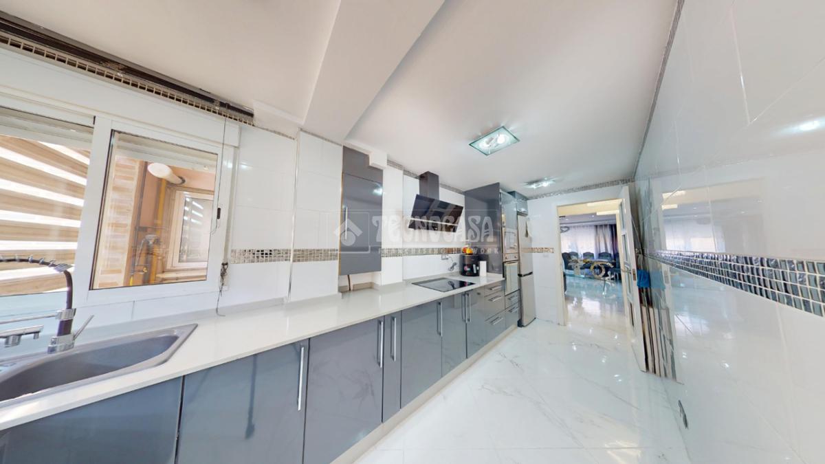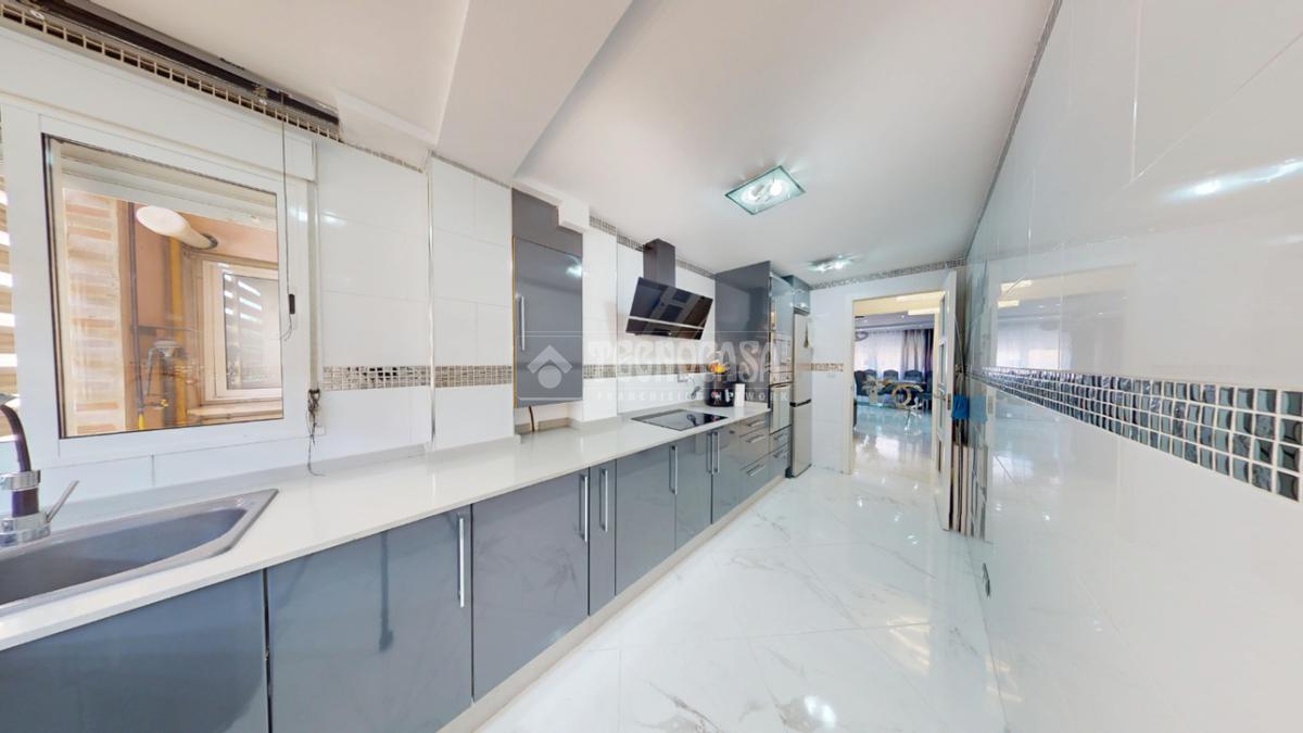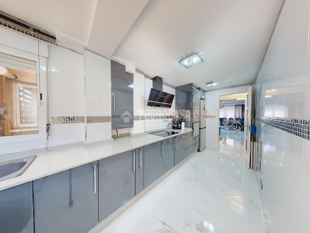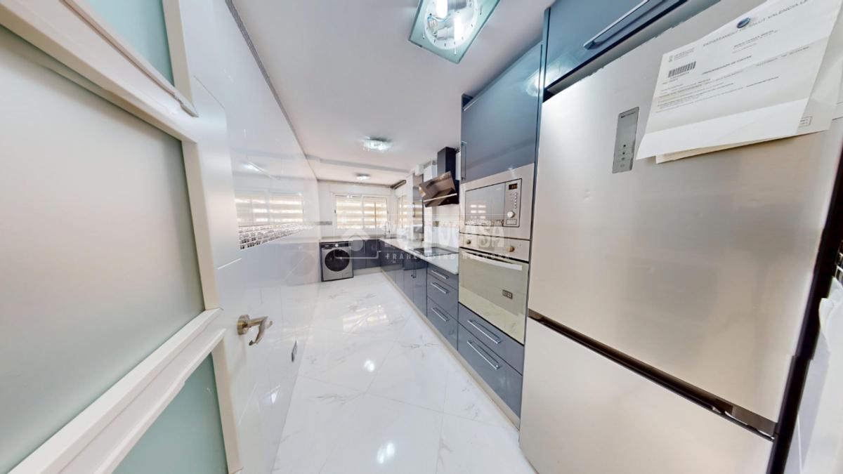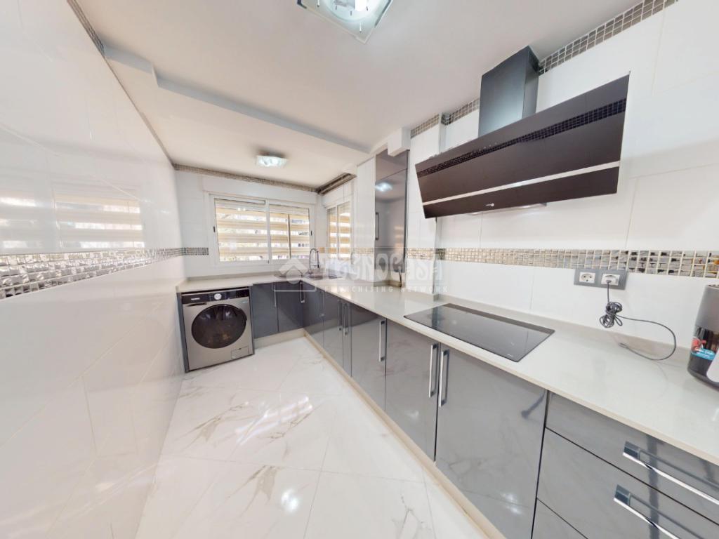 La cocina, amplia y totalmente equipada, destaca por su diseño actual y funcional, con gran capacidad de almacenaje y espacio de trabajo, perfecta para quienes disfrutan cocinando.