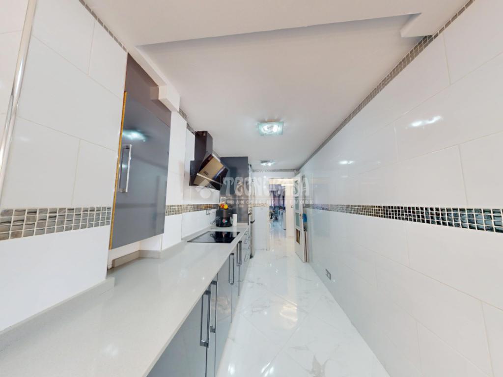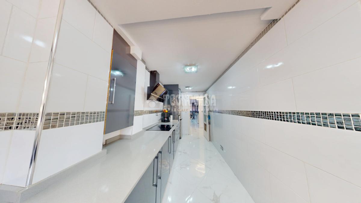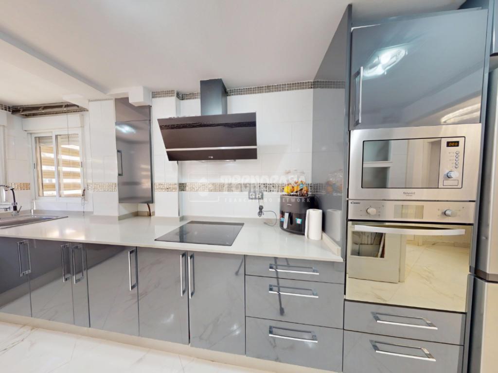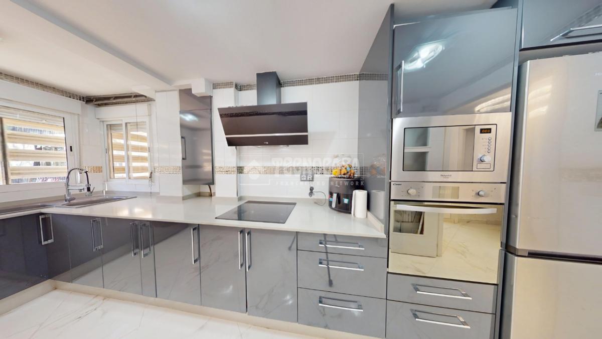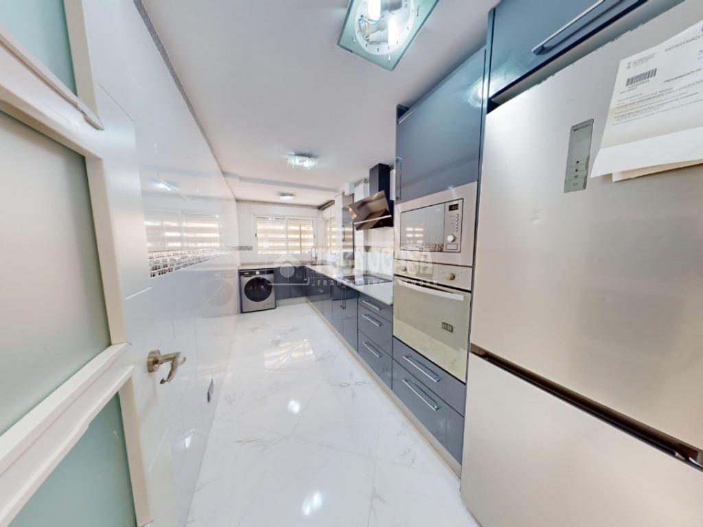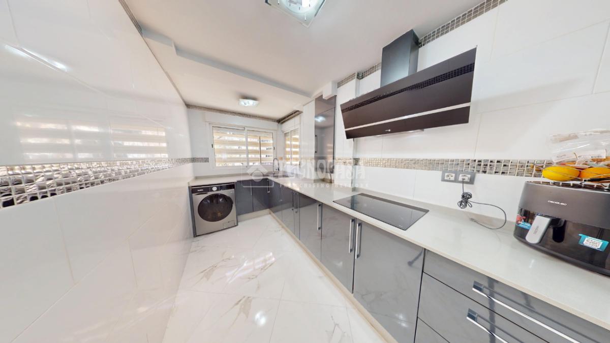 La cocina, amplia y totalmente equipada, destaca por su diseño actual y funcional, con gran capacidad de almacenaje y espacio de trabajo, perfecta para quienes disfrutan cocinando.